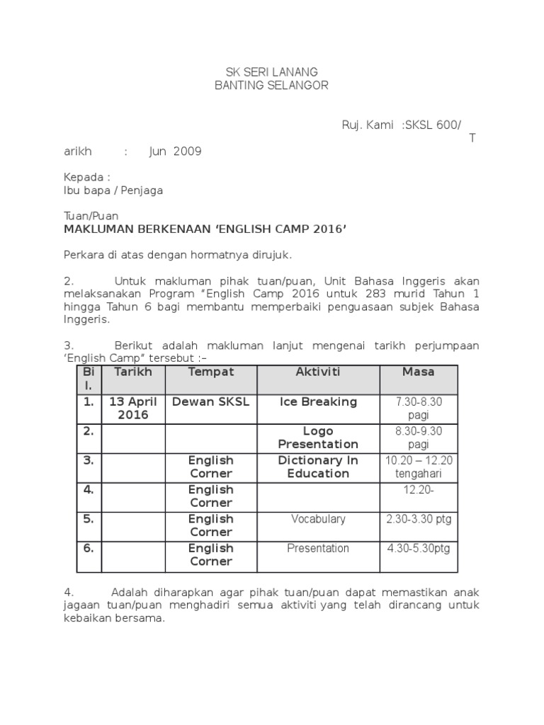 Tuan/puan makluman berkenaan english camp 2016.