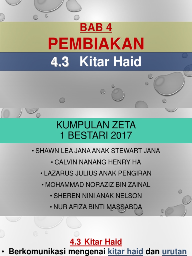Bab 3 chapter 3. Kitaran haid adalah penting untuk menghasilkan ovum (telur) dan menyediakan rahim untuk penghamilan. Suzanna daud 662 views3 year ago. Kitaran haid ialah tanda bermulanya kitar haid bagi setiap perempuan. Untuk mengetahui sama ada haid kita normal atau tidak, kita perlu fahamkan tentang kitaran haid.